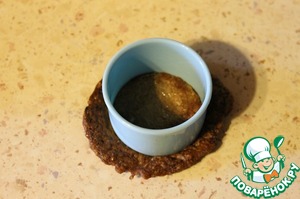 Из печеночных оладьев вырезать подходящие по размеру к формочке круги, можно воспользоваться формочками для печенья.