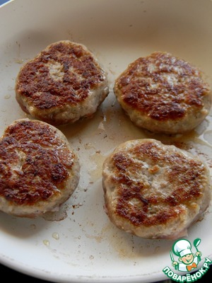 Обжарить на растительном масле, с двух сторон, до готовности. Проверить готовность можно проткнув один раз зубочисткой, должен вытечь прозрачный сок.