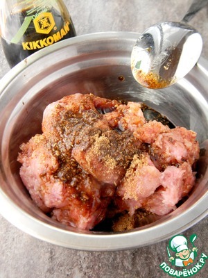 Добавить соевый соус и приправу, я взяла приправу для шашлыка (смесь пряностей). -