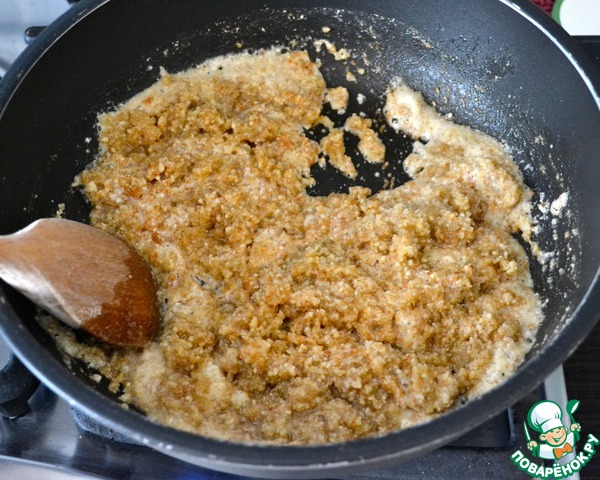 Обжаривать на слабом огне около 3 минут, помешивая. По кухне при этом будет распространятся чудесный ореховый аромат...