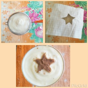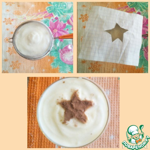 Например, через трафарет и ситечко посыпаем какао-порошком -