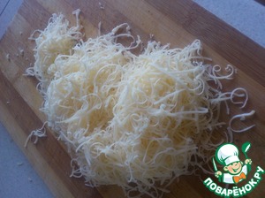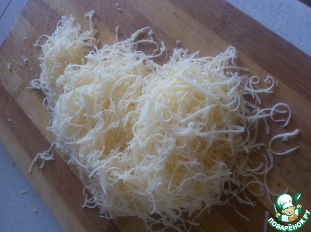 Ставим в духовой шкаф при температуре 180градусов на 30 минут. в это время натираем сыр твердый (можно брать любой)
