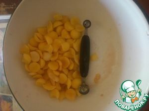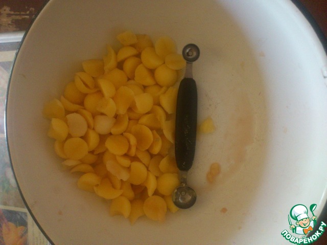 Во время вырезания сердцевины у меня образовались излишки картофеля. я вырезала ножом из набора для карвинга.