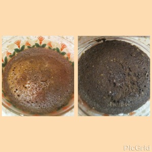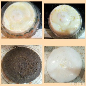 Поскольку я экспериментировала, то пекла с осторожностью. Постоянно доставала проверять раз 5 за 2 минуты :D. Но, упуская эти лишние действия, печь около 7 минут (700ВТ). Внимание!!! Ориентируйтесь по своей микро! Есть мощности, при которых суфле пекут 30 сек! (Я удивляюсь конечно) Наш торт больше, чем просто суфле в формочках, он дольше печётся, + мощность у меня небольшая. Вам может и 5 мин хватить (вдруг ещё меньше?)