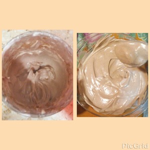 Во вторую часть добавляем какао и взбиваем (с какао прекрасно загустели белки... не знаю почему ) Выкладываем сверху, ровняем