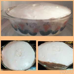 Теперь достаём белки из хол-ка и взбиваем их до плотной пены на средней, а затем высокой мощности