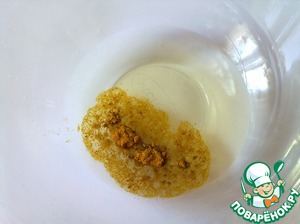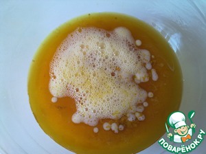 Взбитые яйца с сахаром добавляем в растительное масло с куркумой.