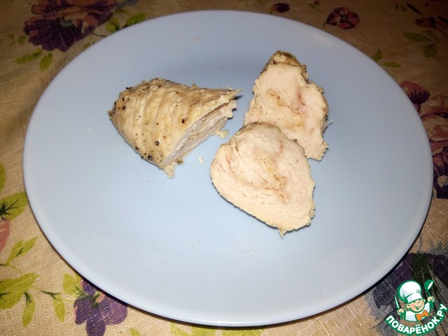 Смешиваем по две ложки соус -маринада Барбекю с медом и чесноком и соус- маринада Teriyaki от Kikkoman кладем в них мариноваться грудку, время минимум 1 час максимум 12 часов в холодильнике.
