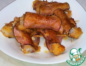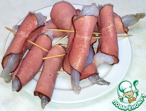 Тигровые креветки в острой ветчине. Хороши для компании за дружеской беседой.