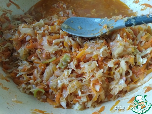 Добавляем томатную пасту. Тушим ещё 15 минут.