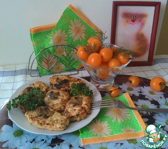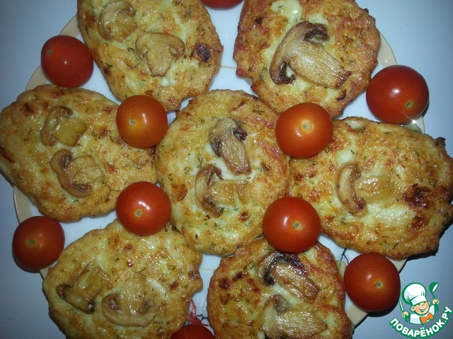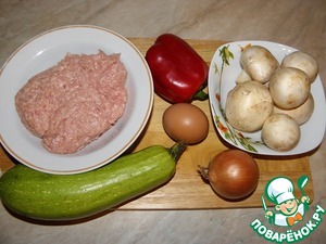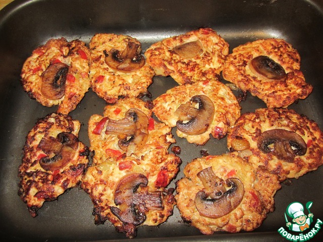 Хочу друзья вам предложить, оладушки прелестные! Вкуснее и не может быть, продукты все полезные! В них соды нет, и нет муки, лишь овощи и курица! Такие легкие они, а вдруг кому полюбятся! А еще, так необычно мы украсим их грибами! Чтоб немного, для задора, все порадовались с нами! Сладкий перец, кабачок, фарш из курочки нежнейший, лук и маленький грибок! Результат у нас вкуснейший!
