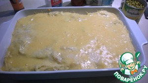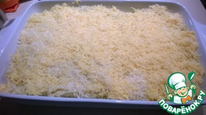 Сверху посыпаем оставшимся сыром и отправляем в разогретую до 180С духовку.