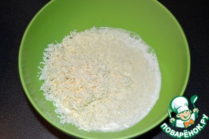 Соединить сладкое молоко с творогом, добавить размягченное масло, перемешать.