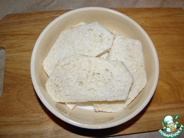 - Хлеб (несколько кусочков белого хлеба, 100-110 гр) — 110 г