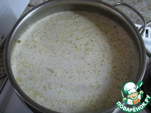 Добавить в бульон курицу и, как только чуть-чуть остынет, сливки. Суп готов!
