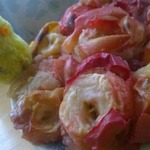 Очень люблю ранет по этому рецепту! Впервые попробовала на Рождественском столе в гостях у тети моего мужа. Даже не знаю, традиционный ли это рецепт в Португалии или нет, так как таких печеных яблок нигде больше не ела. Моим личным дополнением к нему была замена обыкновенного зеленого чая на жасминовый, на мой взгляд от этого блюдо только выиграло.