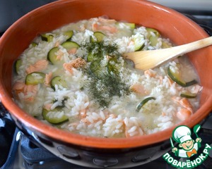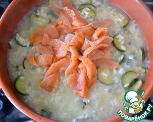 Рецепт «Ризотто с цуккини и слабосоленой семгой»: