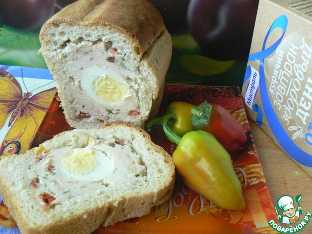 Оригинальная закуска или даже основное блюдо, легкое в приготовлении, оно непременно порадует Вас. Сочная начинка из куриного филе, помидоров, петрушки и лука и вареных яиц придаст сил и энергии, а овсяные отруби делают блюдо еще полезнее. Еще одно преимущество - такой террин можно взять с собой и на работу, и на природу.