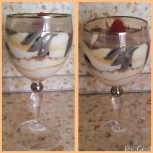 Дальше всё оочень просто: берём креманку или бокал, накладываем 2-3 ст. л. йогурта (половину)
