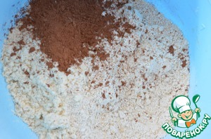 Сухое молоко (или детскую смесь), овсяные отруби смешать с какао-порошком