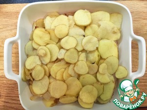 По слоям выложила вниз картошку, боялась, что иначе не пропечётся.