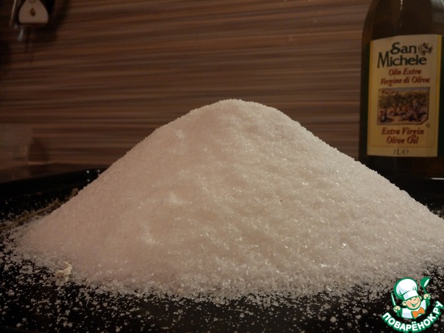 - Соль (соль брать крупную,лучше морскую, но это на любителя) — 700 г