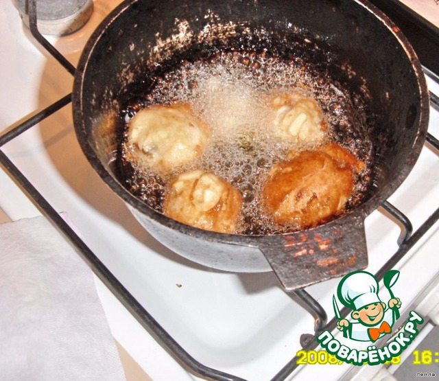 Разогреть масло во фритюрнице (у кого что есть, кастрюле) с помощью 2-х ложек отделять порционно от теста пончики и жарить по 4 мин. до золотистого цвета.