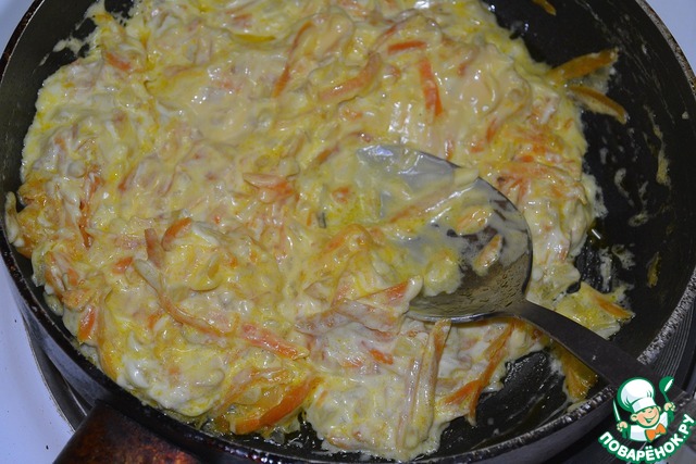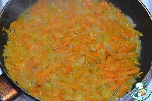 лук нарезать мелкими кубиками, морковь натереть на терке. Обжарить овощи на растительном масле. -