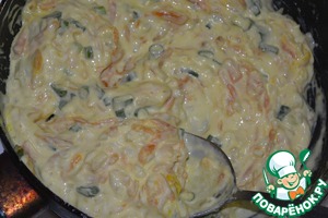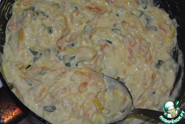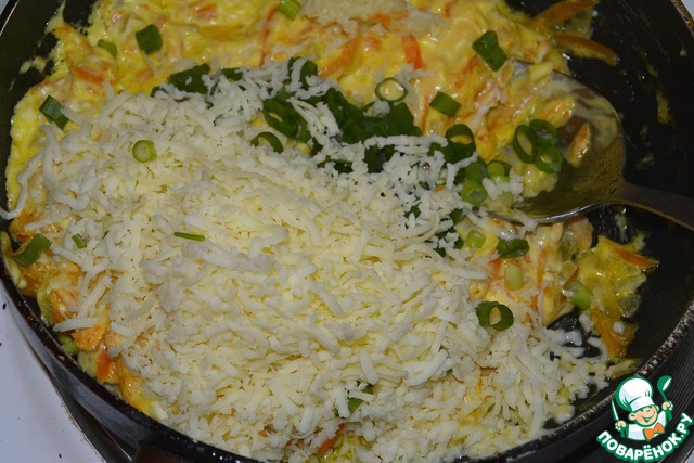 Выключить огонь и добавить сыр, зелень и чеснок.