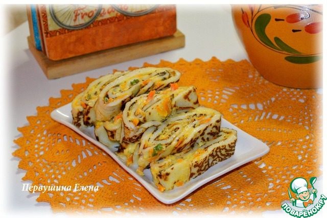 Рулетики из рисовых блинов с морковно-сметанной начинкой. Нежные блинчики на измельченных рисовых хлопьях с ароматной сметанно-морковной начинкой с чесночком. Угощайтесь!