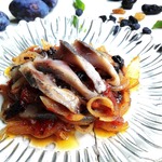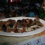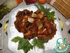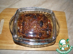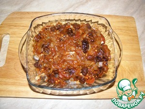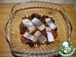 Сельдь, если нужно разделать, нарезать кусочками 1-1. см. Замочить чернослив с изюмом, чернослив нарезать небольшими кусочками.