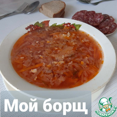 Моя вторая половина из первых блюд предпочитает борщ, готов его кушать и на завтрак, и на обед, и на ужин. Предлагаю Вашему вниманию вариант моего борщика, горячо любимого супругом.