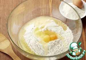 Просеять муку добавить яйцо, дрожжи и перемешать. В воду добавить соль, сахар. Масло размешать, слегка подогреть, после чего влить в муку и вымесить тесто до однородной консистенции. Посуду с тестом накрыть пищевой пленкой и поставить в духовку, при температуре 37-40 С на 25 минут.