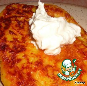 Слегка разогреть сковороду с маслом. Ложкой выкладывать оладьи на сковороду, подравнивая края. Жарить оладьи из тыквы на медленном огне с двух сторон до готовности, аккуратно переворачивая их лопаткой.