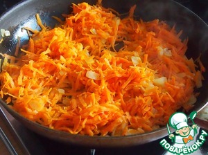 Итак, лук порезать на кусочки, морковку натереть на крупной терке и поджарить на небольшом количестве масла. -