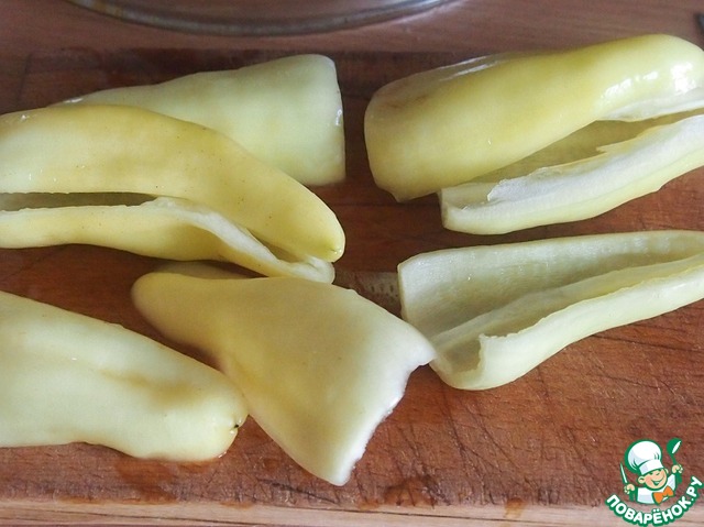 Перец порезать на кусочки и тоже немного поджарить. Старайтесь использовать как можно меньше масла.