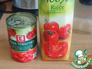 Помидоры опустить в кипяток, поварить пару минут. Затем очистить и нарезать на кусочки. Те, у кого нет помидоров, могут использовать готовые консервированные из магазина и томатный сок оттуда же. Это, кстати, экономит время и силы.