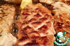 Надрезать грудки сеточкой. Так они прекрасно прожарятся и будут красивыми. Из соуса весь чеснок постараться положить в надрезы на курочке. Жарить сначала с надорезанной стороны. Перевернуть. Добавить немного сливочного масла. Дожарить на нем. Так курочка будет ещё нежнее!!! так делала моя бабуля в детстве. Я готовлю, как она и вспоминаю её добрым словом.