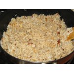 Включить медленный огонь и добавить воду. Закрыть крышкой. Кода вода исчезнет выключить плиту и накрыть сковороду полотенцем и оставить на 10 мин.
