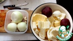 Две свёклы, 3 луковицы, 4-6 небольших головок чеснока.