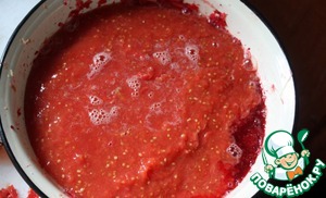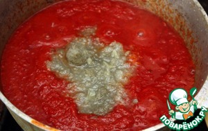 В казане (можно и в кастрюле, но надо постоянно помешивать, да и всё равно чуть-чуть, да пригорит - отмывать потом...) варим массу где-то полчаса, после чего добавляем замариновавшуюся луко-чесночную смесь.