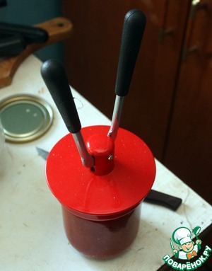Как банки простерилизуются, закрываем. Я себе на днях купил такую шайтан-машину. Испытываю. Машинка справилась, хотя закаточная мне больше нравится.