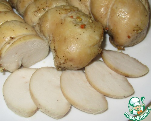Очень вкусное, просоленное, диетичное мясо. Готовится не быстро, но от вас потребуется минимум усилий)