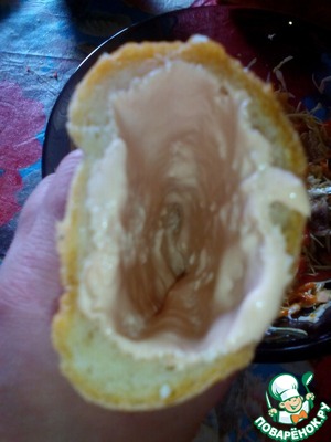 Багет внутри щедро смажем соусом, чтобы стенки пропитались и не были сухими