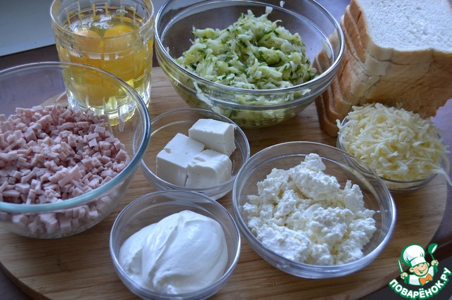 Ингредиенты для «Тосты, запеченные с творогом и цуккини»: