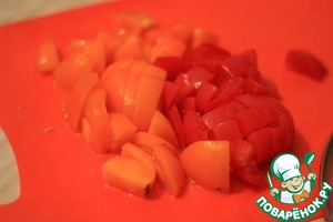 Моем и режем помидоры. Можно резать крупно, это не принципиально.