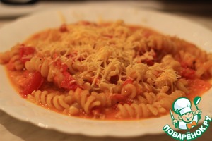 Готовые макароны добавляем в помидорный соус. И ждем еще пару минут и готово! Не забываем по вкусу добавить соль. Я чаще вместо соли использую соевый соус.