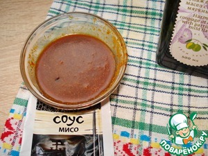 Соус мисо смешаем с сахаром и 2 ст. ложками воды.