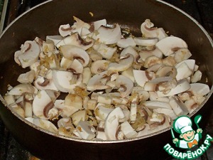 Посолить, поперчить, довести до кипения и готовить на маленьком огне без крышки примерно 10 минут. Выложить в кастрюлю к грибам.
