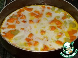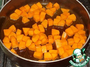 В сковороду добавить немного масла, высыпать тыкву и слегка обжарить.